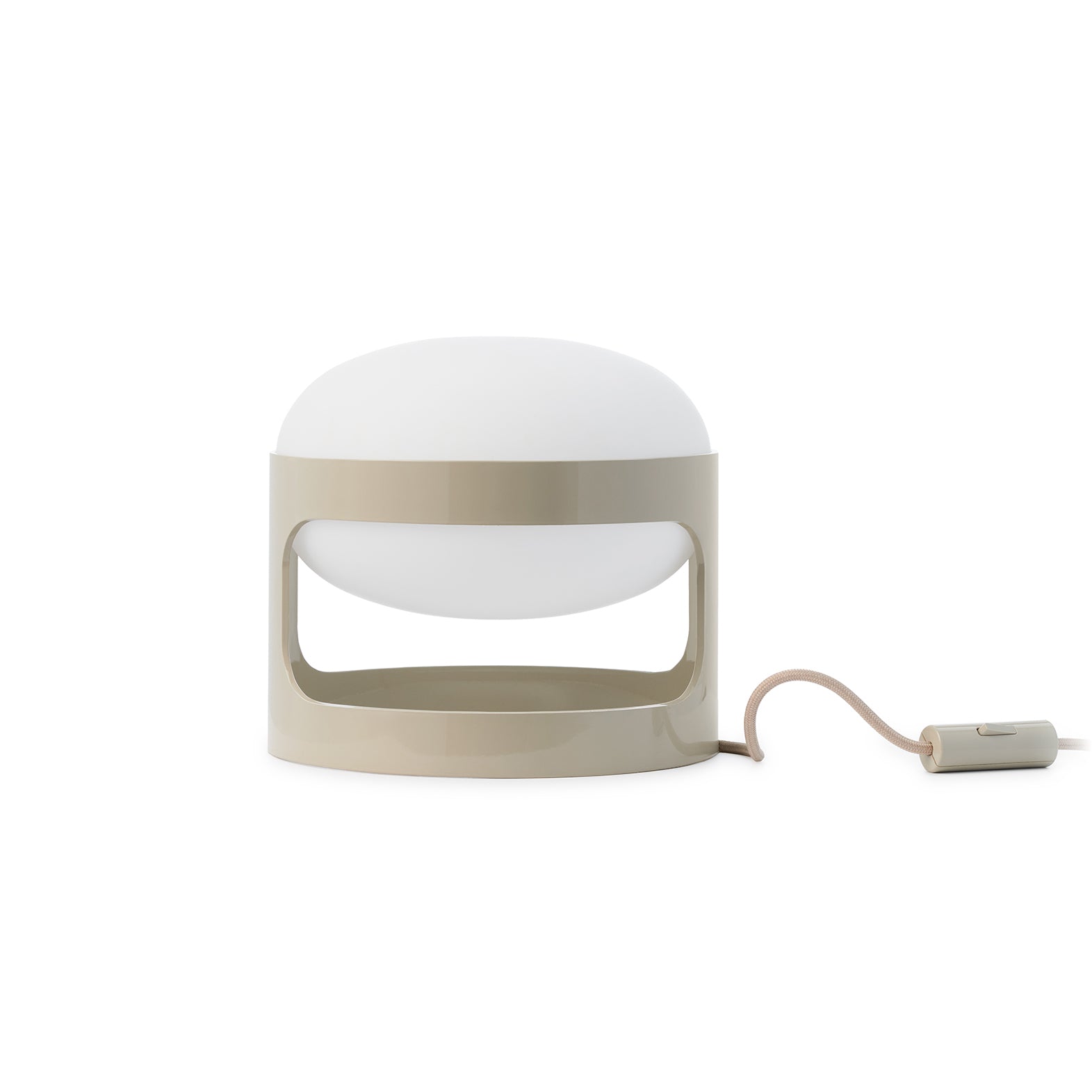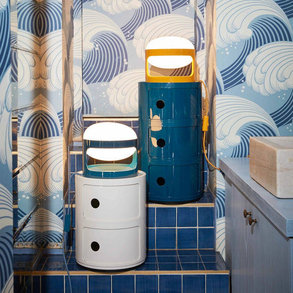 Merging past and present, Kartell revisits Joe Colombo's iconic 1967 KD28 lamp. Adapted for today with recycled materials, its innovative spirit endures, now featuring a satin-finish shade for warmer light and a color-matched fabric cord, symbolizing Kartell's creative continuity.