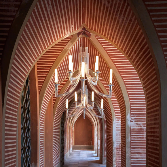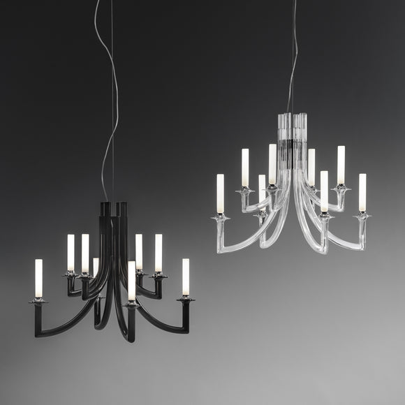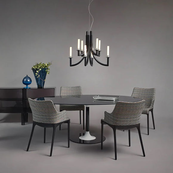 Experience a fusion of 18th-century eclecticism and contemporary minimalism with the Khan LED Chandelier from Kartell. Designed by the legendary Philippe Starck, this piece showcases a fluid arrangement of metal and polycarbonate, creating an elegant juxtaposition of candelabra arms. Powerful LED's provide a gentle glow while the innovative use of Kartell's polycarbonate 2.0, derived from renewable sources earned this chandelier a prestigious ISCC certification.