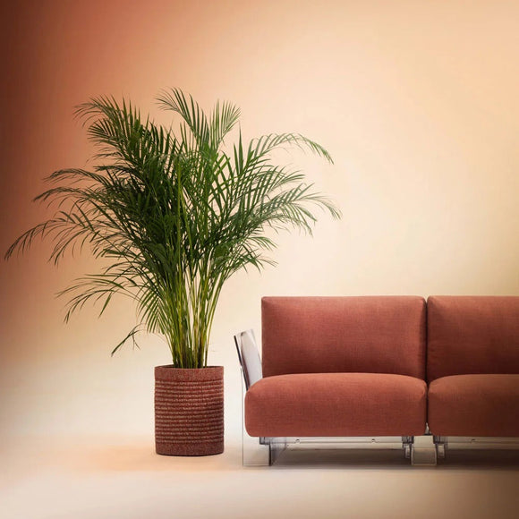 Designed by Ludovica+Roberto Palomba for Kartell, the Kleo Cachepot adapts to any living space, indoors or out. Made from recycled and recyclable PET, its durable, easy-to-wash, and breathable characteristics make it particularly suitable for gardens, terraces, or humid environments.
