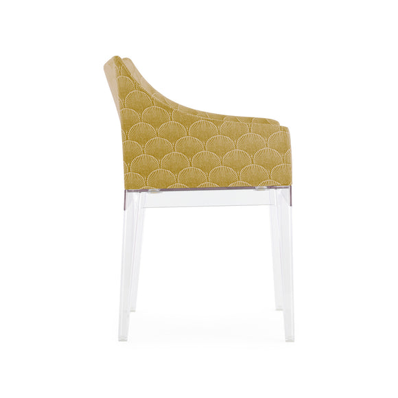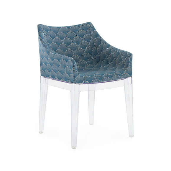 Philippe Starck's Madame chair for Kartell is updated with exclusive Liberty London fabrics, including the archival "Fanfare" pattern, celebrating Liberty's 150th anniversary. New frame colors enhance this blend of tradition and modernity, creating timeless works of art for sophisticated homes.