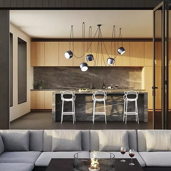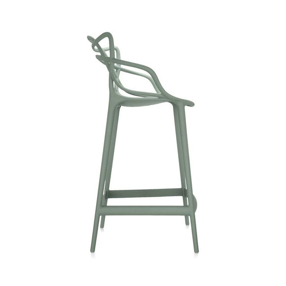 Like the Kartell Masters Chair, the Kartell Masters Stool is a compelling Philippe Starck design that pays homage to three iconic modern chairs. Ingeniously merging the silhouettes of famous chairs by modernist masters, Eero Saarinen, Arne Jacobsen and Charles Eames, this innovative contemporary stool elegantly segues into any modern dining room or kitchen space indoors or out.