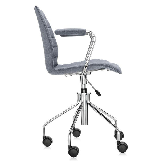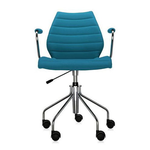 Designed between 1995 and 1996, the Maui chair was the focal point of design research in the nineties and is the first of a new era of single mold seats in material that has no ribbing, tracery, metal supports or reinforcements to support the back In 2012 Kartell gave it new appeal style- and price-wise and brought it back in a fabric-covered version (Kvadrat and Trevira) – with and without casters and arms thus increasing its rich family of colors and functions, able to satisfy the specific needs in the contract sector as well as in the home. Its elegant lines and practicality make the Maui chair an extremely versatile design, just as contemporary today as yesterday.