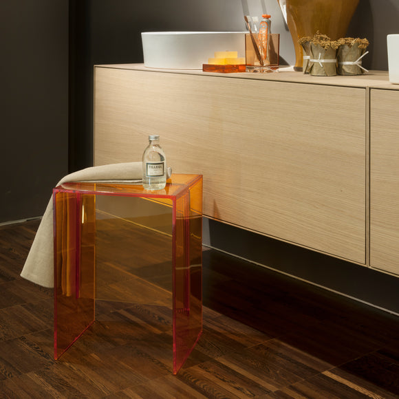 A multifunctional design that's totally transparent, the Kartell Max Beam is an elegant modern table that functions equally well as a compact stool. Crafted from Kartell's signature polycarbonate, clean lines and transparent beauty make it a worthy complement to any interior design scheme, while its lightweight design makes it effortlessly portable within your space.