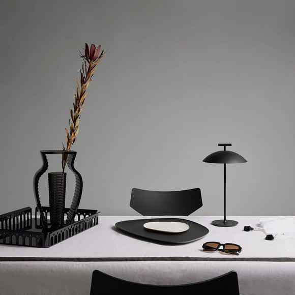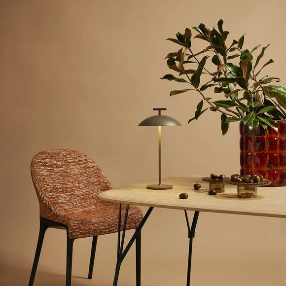 Take your glow on the go with the Mini Geen-A Portable Table Lamp from Kartell. Designed by Ferrucio Laviani, this sleek, rechargeable LED lamp boasts a powder-coated steel frame and a classic mid-mod inspired design. Enjoy its eco-friendly LED light and chic handle for easy transportation.