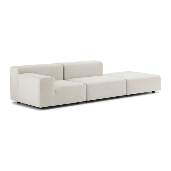 Plastics is the modular sofa with severe lines characterised by large cushions made of soft polyurethane upholstered in fabric. The Pop collection is completed by an armchair with the same features and by a pouf, which can be used individually or as part of an arrangement.