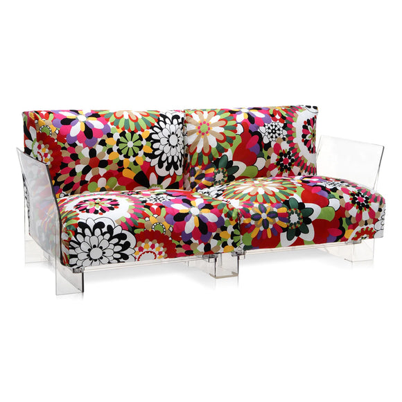 Pop is the first “infinitely repeatable" modular sofa. Easy to take apart and manufactured industrially, Pop is composed of identical transparent polycarbonate single-seat modules which can be placed side by side to create the sofa's solid frame: backrest, seat (also made of plastic slats) and armrests. Pop shatters preconceived ideas of the rigidity of plastic, offering itself as a comfortable and indestructible industrial upholstered sofa that stands up to shocks and heavy use. The large and soft goose feather cushions are available in a number of fabrics. For those who love imagination and can’t live without a modern and lively touch in their home, Kartell is offering a series of Missoni fabrics: “Vevey”.