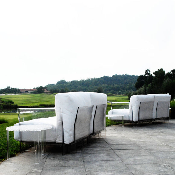 Today, Pop is no longer content to stay inside, it's ready to head outdoors! So, here's "Pop outdoor", with a water-resistant, stain-resistant and UV-resistant fabric that doesn't fade. Washable and easy care, this fabric is also mold-resistant and condensation won't form from heat and humidity. Pop's “Sunbrella” outdoor upholstery is available in a rainbow of solid, bright colors.