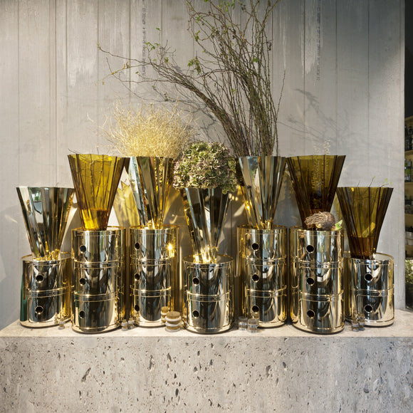Designed with both beauty and functionality in mind, the Componibili modules designed by Anna Castelli Ferrieri in 1969 for Kartell are a design-forward storage solution. With a rounded plastic frame and sliding doors, the modules make their mark situated in an office space, holding supplies or even as part of the master bath to hold perfume and beauty tools. Need a more functional piece? Try sitting the tower atop castors for an instant mobile piece for kids play spaces or lounge areas.