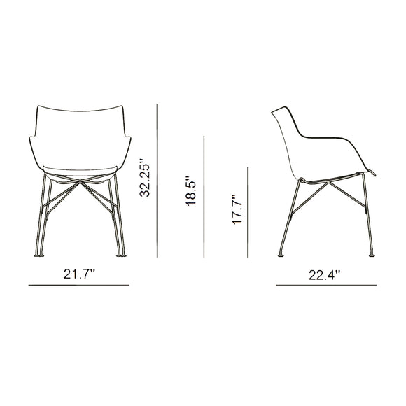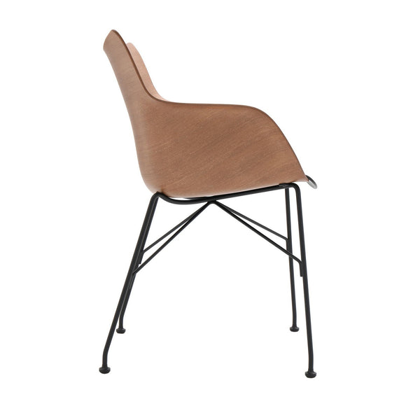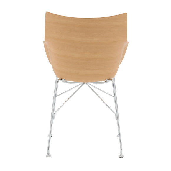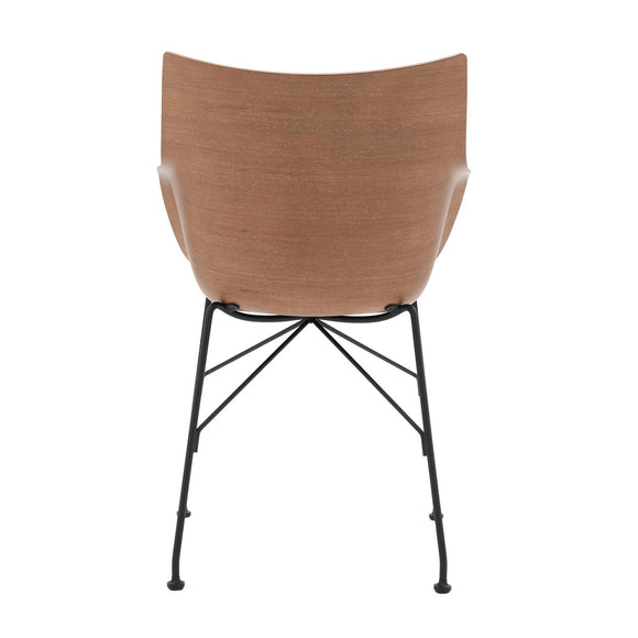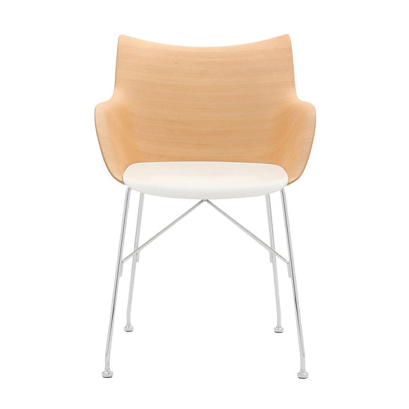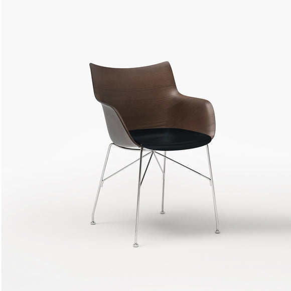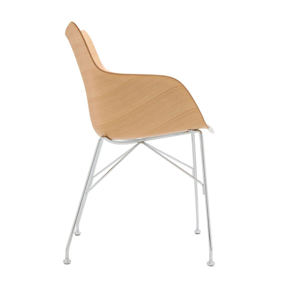 Q/Wood is the small Smart Wood armchair with white or black plastic seat and basic veneer or slatted ash panel, light or dark, mounted on a chromed or black painted steel frame.