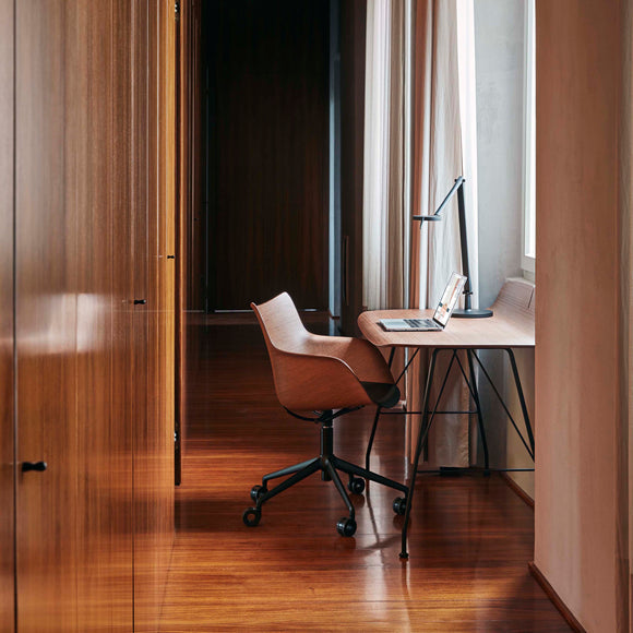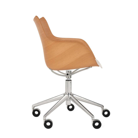 These brand-new rotating armchairs on wheels are the latest addition to the armchair collection. Q/wood is characterized by a woodworking, combining timeless elegance with contemporary forms.