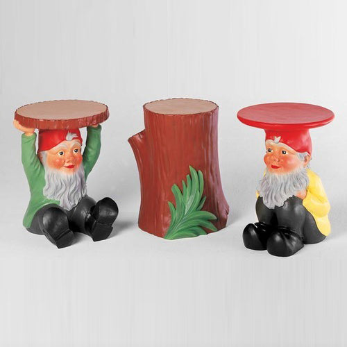 Attila, Napoleon and Saint-Esprit are three table-stools, three charismatic personalities of striking originality and anti-conformism. Stools and tables which are cute and humorous but with one eye on functionality, thought up to furnish every setting imaginable. The gnome hats, in fact, are flat and circular so that they may be used as a stand or stool. The Saint-Esprit version of the stool takes the form of a section of a tree.