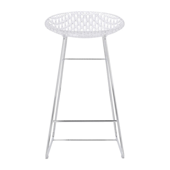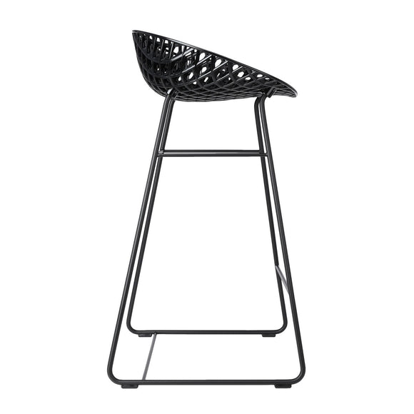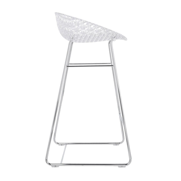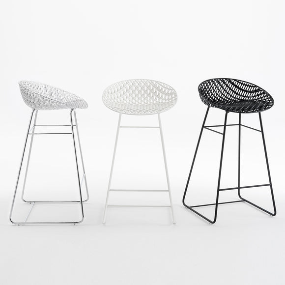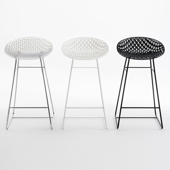 Designed by Tokujin Yoshioka, the Smatrik Stool from Kartell offers a distinctive silhouette crafted using a mold which enables the recreation of a 3D net that overlaps and crosses over. Featuring an innovative frame that creates a three-dimensional effect, creating a light and elegant seat that is perfect for dining, lounging, or situated at your kitchen counter. Crafted from Kartell's iconic polycarbonate that is made from a proprietary, eco-friendly blend of ISCC certified cellulose and paper waste, this stool is evidence of Kartell's commitment to the environment and producing innovative materials and designs. Pair with a transparent polycarbonate or glass high-top table for a contemporary aesthetic or bring new heights to a solid wood at-home bar design for a touch of textural contrast and visual intrigue.