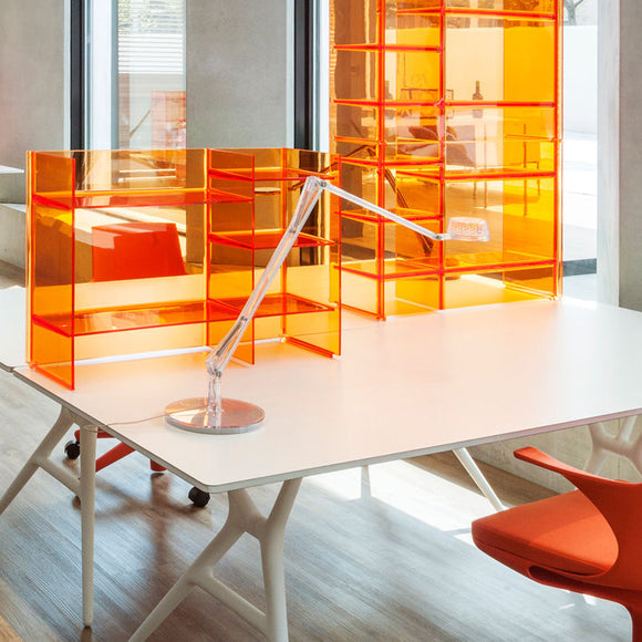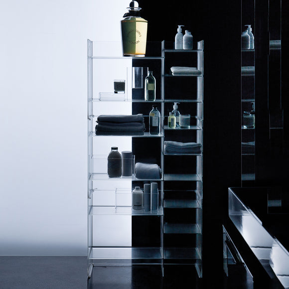 The Sound-Rack Shelves from Kartell are a versatile and stylish addition to any home. With their stackable and modular design, they offer endless possibilities for creating unique and eye-catching arrangements. Not only do these shelves provide ample storage, but they also function as a room divider, making them a must-have for any modern and sophisticated space. Add a touch of luxury and functionality to your home with the Sound-Rack Shelves.