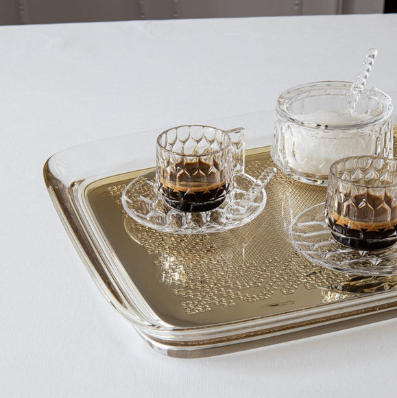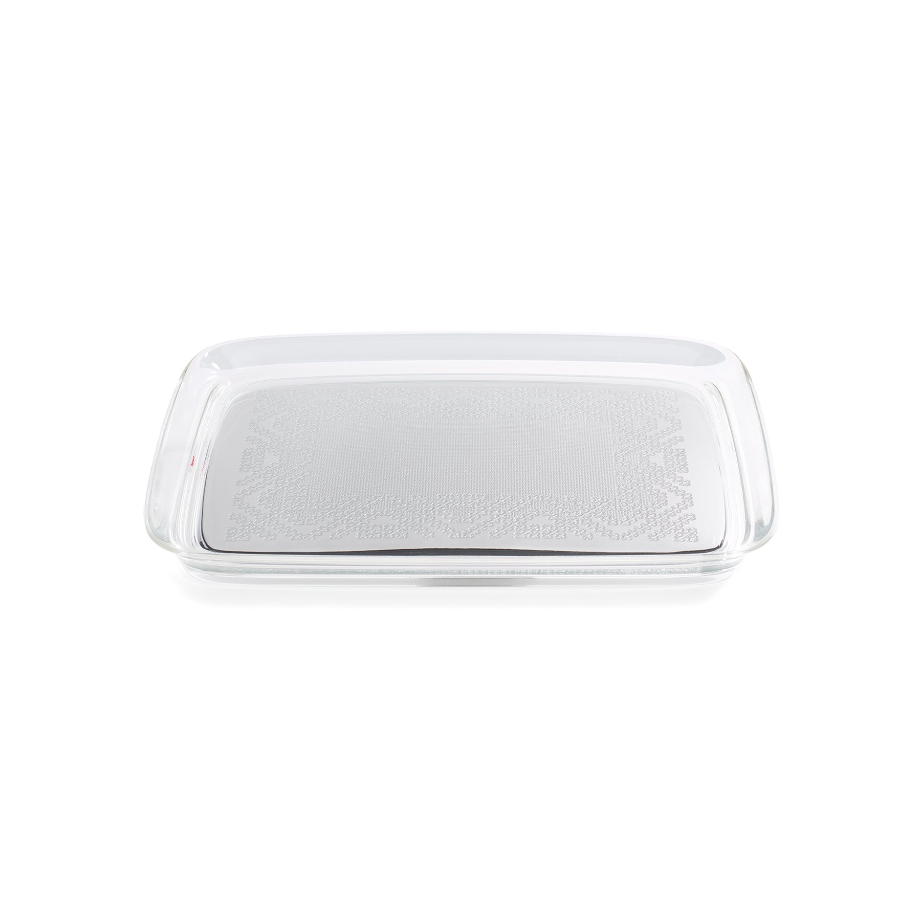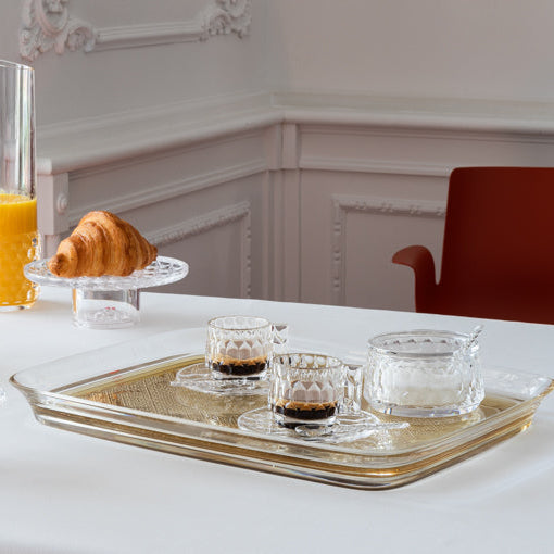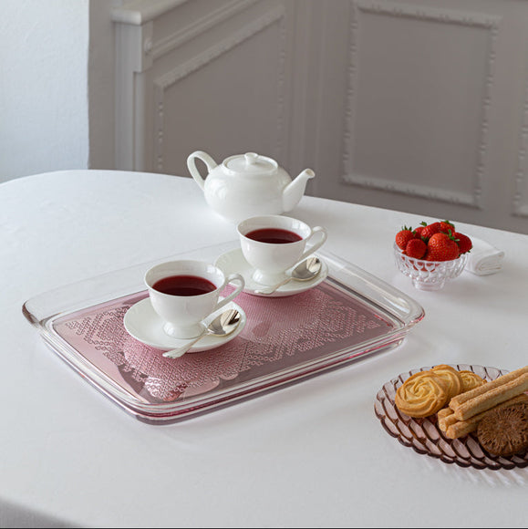 Philippe Starck's Teatime Tray features precious embroidery, reminiscent of crocheted openwork from the past, translated into a modern, sustainable material. This discreet design object evokes the familiar feeling of family tea time with contemporary, high-tech style.