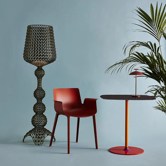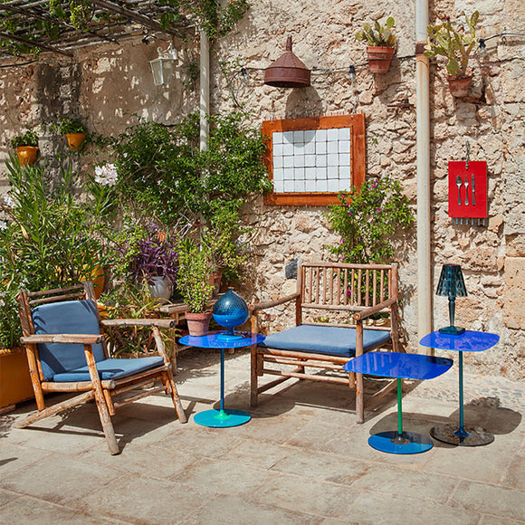 Cut like a stylish gem with rounded corners, the Thierry Side Table from Kartell is a chic way to upgrade your interior. Boasting a vibrant sheen, a spacious tempered glass top provides ample room for a lamp or daily essentials, while the rounded disc base ensures a sturdy pop of colorful design.