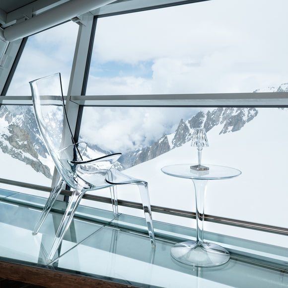 While small in stature, the Tip Top table designed by Philippe Starck for Kartell makes up volumes in style. Featuring a lightweight design constructed of batch-dyed PMMA, this table showcases a single base supporting a solid tabletop. Perfect situated on either side of a bold sofa, or scattered about the back patio to hold drinks and snacks, this table is sure to impress.