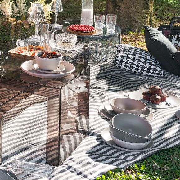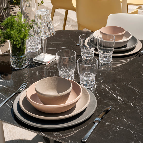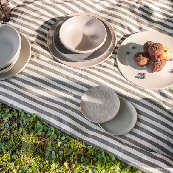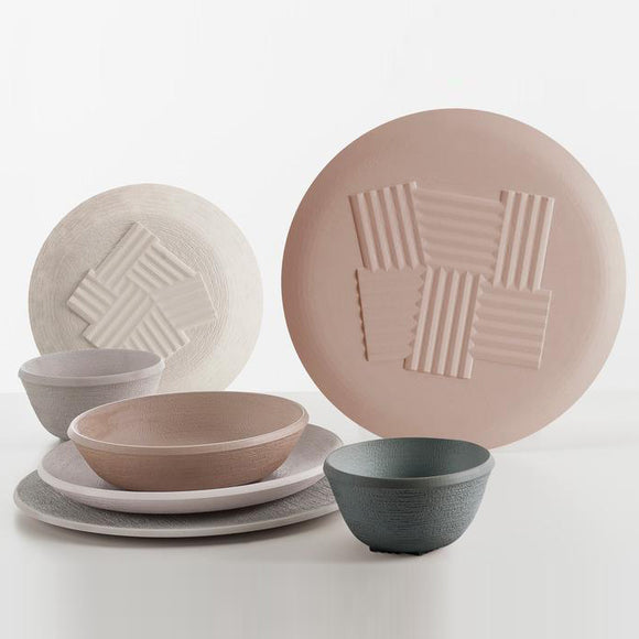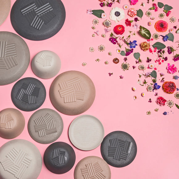 The Trama tableware collection signed by Patricia Urquiola is a complete dinner set inspired by Japanese pottery with its characteristic and highly refined textures in natural earthy colors and matte finishes. Similar to the pottery associated with country homes, the plates have a rough feel and are further defined by a graphic stroke that elegantly underlines the essentiality of the collection.
