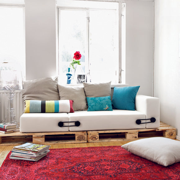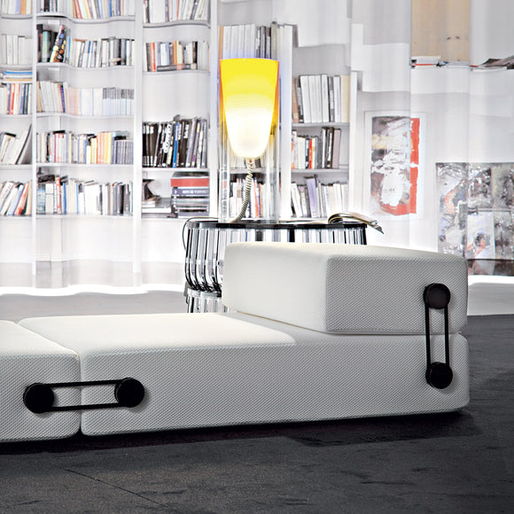A seating design that can adjust to your lifestyle or comfort needs, the Trix Seating from Kartell is composed of three cushions of different sizes linked by an elegant system of rubber bands for endless combinations. With a simple rotating movement, the cushions can be transformed and used as a cozy bed, a comfortable lounge chair, and even a welcoming armchair ideal for contemporary living rooms, bedrooms, and children's play spaces alike.