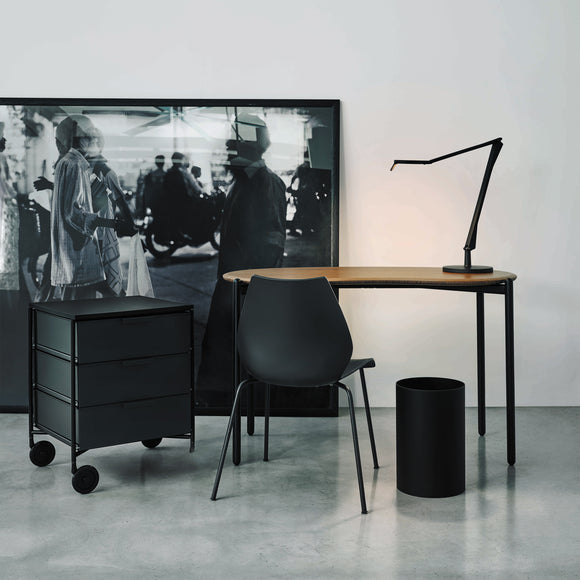 A simple container gets an iconic makeover with this Waste Basket from Kartell. Designed by Ufficio Tecnico, the simple, yet modern design offers a space-saving solution for all of your waste needs. With a soft edge and muted tone, this waste basket sits perfectly tucked beside a bathroom sink or holding paper shreds in the office. Bring modern design to any space with this stylish find from Kartell.