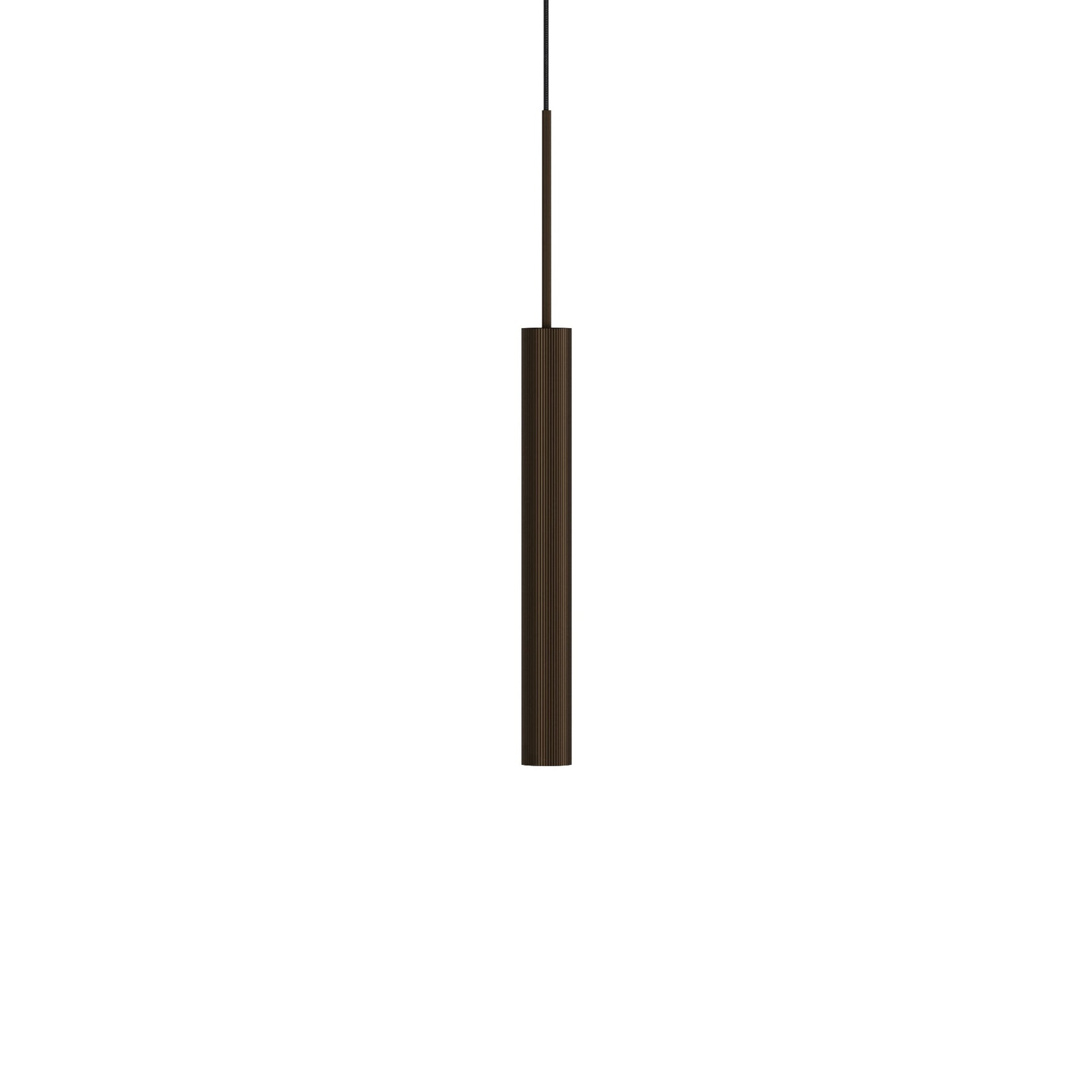 Upgrade your space with the Tubulaire Pendant Light from Audo Copenhagen. Its reeded aluminum design, bronzed brass finish, and directional light make it perfect for task-oriented activities in an office, kitchen, or bedroom. Available in two sizes, this sleek and contemporary light adds a touch of sophistication to any setting.