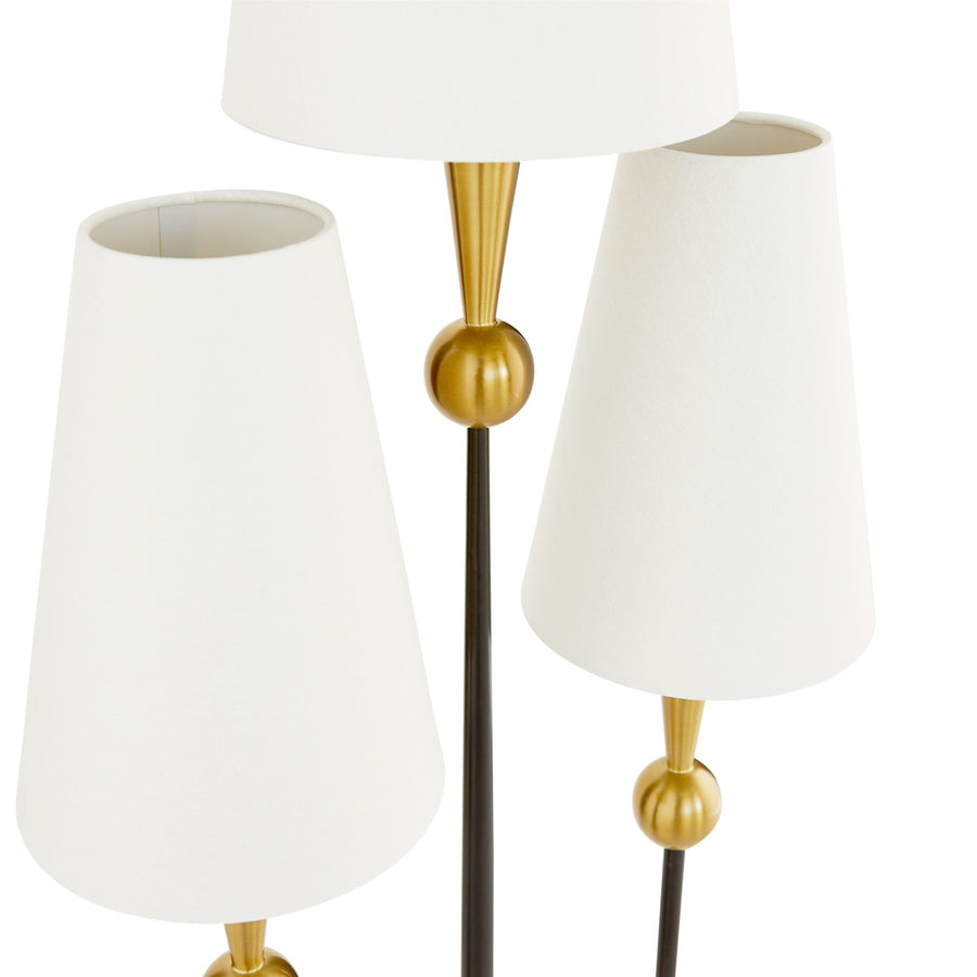 Light and airy, but with a strong presence. Our Caracas Cactus Floor Lamp features three blackened metal stems of two different heights on a thick white marble base to create a modern cactus-inspired silhouette. Each stem is accented with antique brass orbs and topped with a white linen shade.