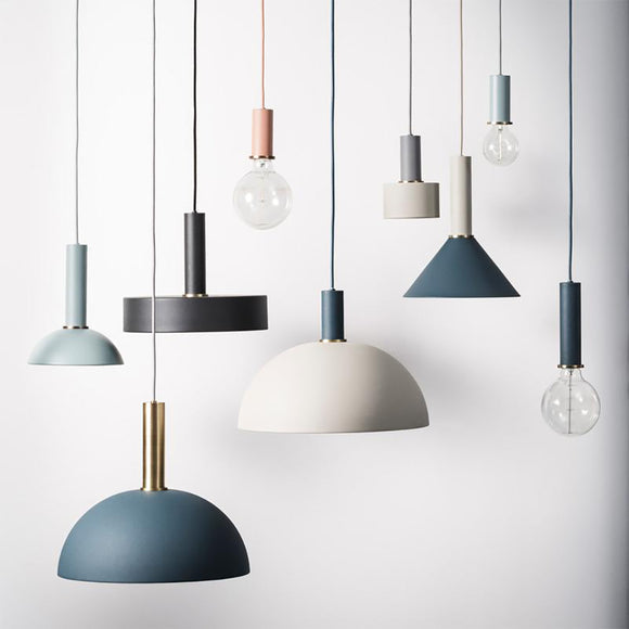 With a nod to retro forms, this large pendant of black brass radiates strong light downwards thanks to its reflective white interior. Providing an extravagant element to your interior design, this brass lampshade is part of the interchangeable Collect Lighting series. Create a modern look and pair this design with any socket pendant from the Collect Lighting series.