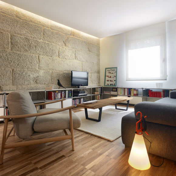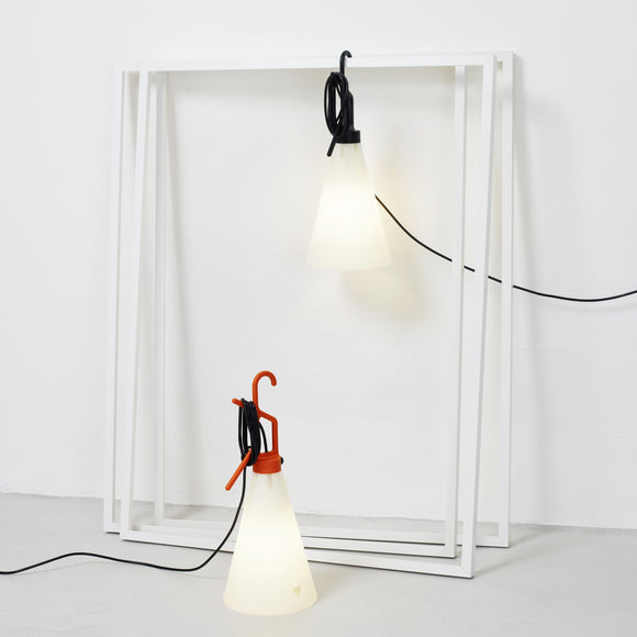 The May Day Table Lamp by FLOS is a smart, stylish table lamp that was presented the Compasso d'Oro industrial design award. Crafted with injection-molded polypropylene, this multifunctional piece can be hung from the wall or ceiling, placed on the table or floor. This means it will always have a place in your home. Rather than try and hide the cord, this piece puts it on display, lending the design a subtle industrial flair.