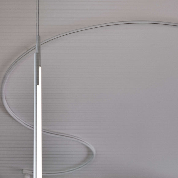 Brighten up your space with the unique beauty of the My Circuit Line Pendant Light from FLOS. Its adjustable and oriented vertical bars offer diffused light and its integrated LED strip allows for adjustable brightness of 10-100%. Made of durable aluminum with a matte white finish, the included power cable offers a length of 118.1 inches and can be adjusted to easily suit your space.