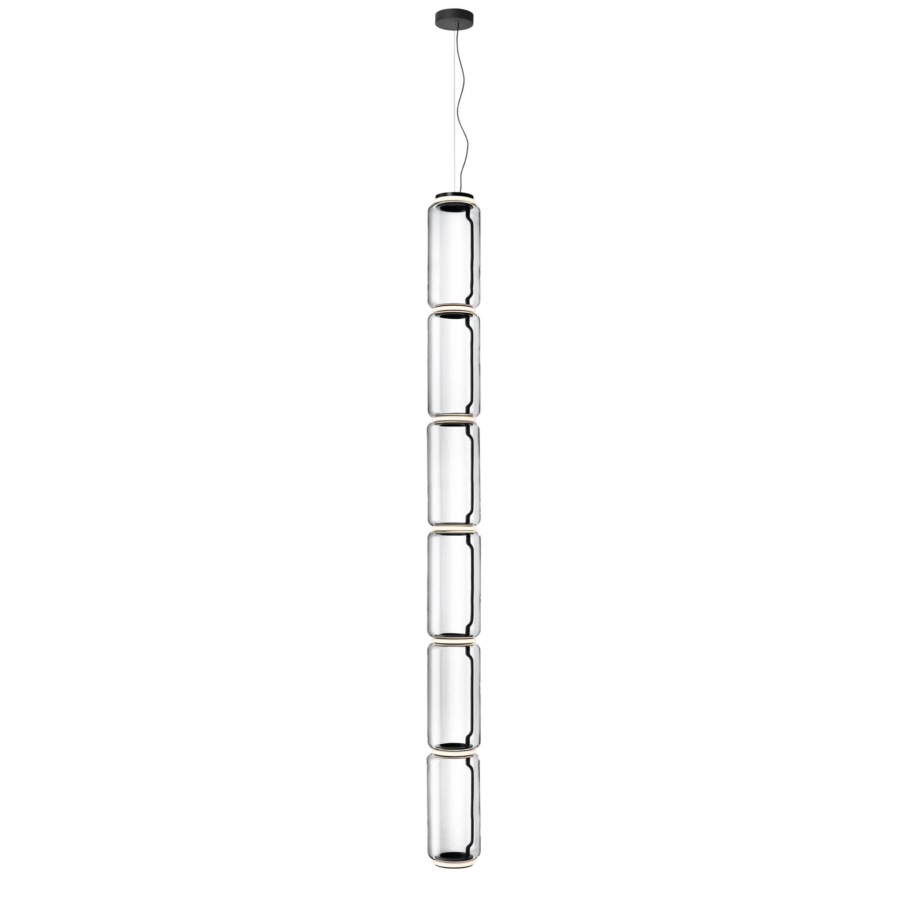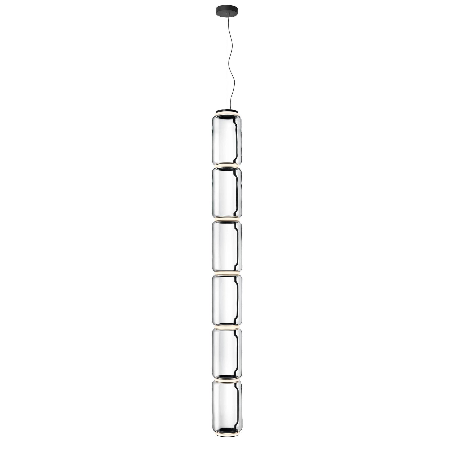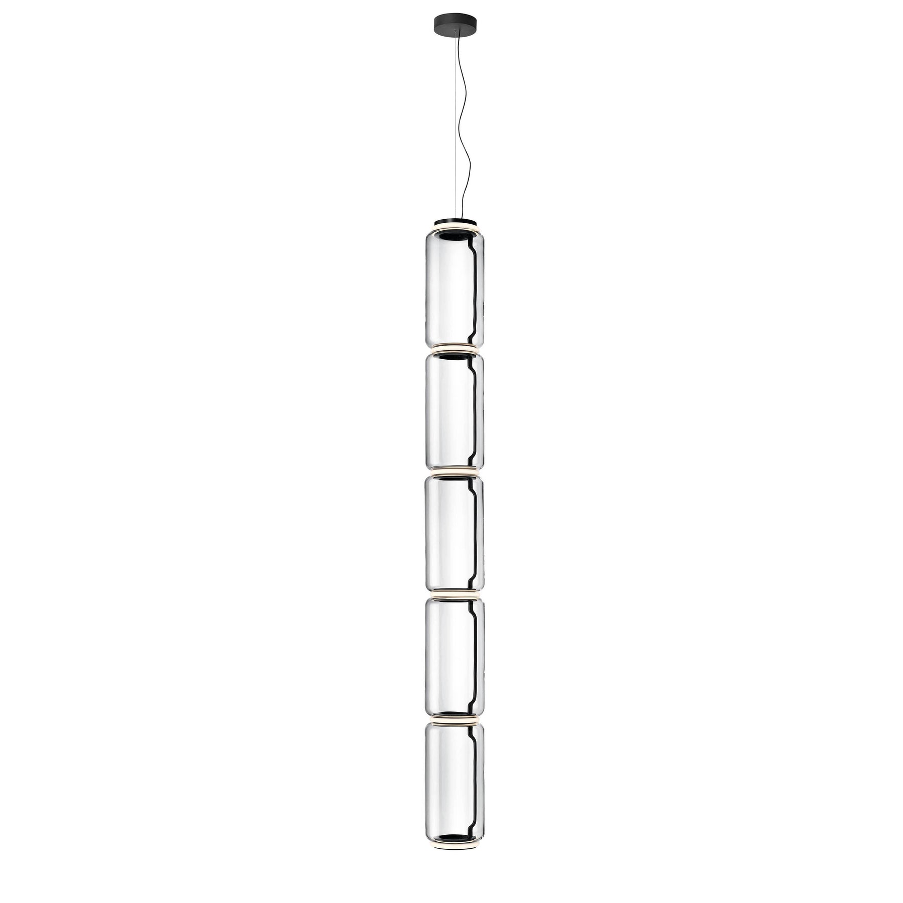 Noctambule LED dimmable pendant light short cylinders by FLOS is the latest in the series of inventive lighting fixtures envisioned and executed by master designer Konstantin Grcic. This groundbreaking lighting system is made up of various units that blend together to provide illumination at the intersection between every module. Offered in a variety of artistic designs, Noctambule’s dimmer can be operated from its power unit within the ceiling rose, or controlled using the pedal-enabled panel in its power cord.