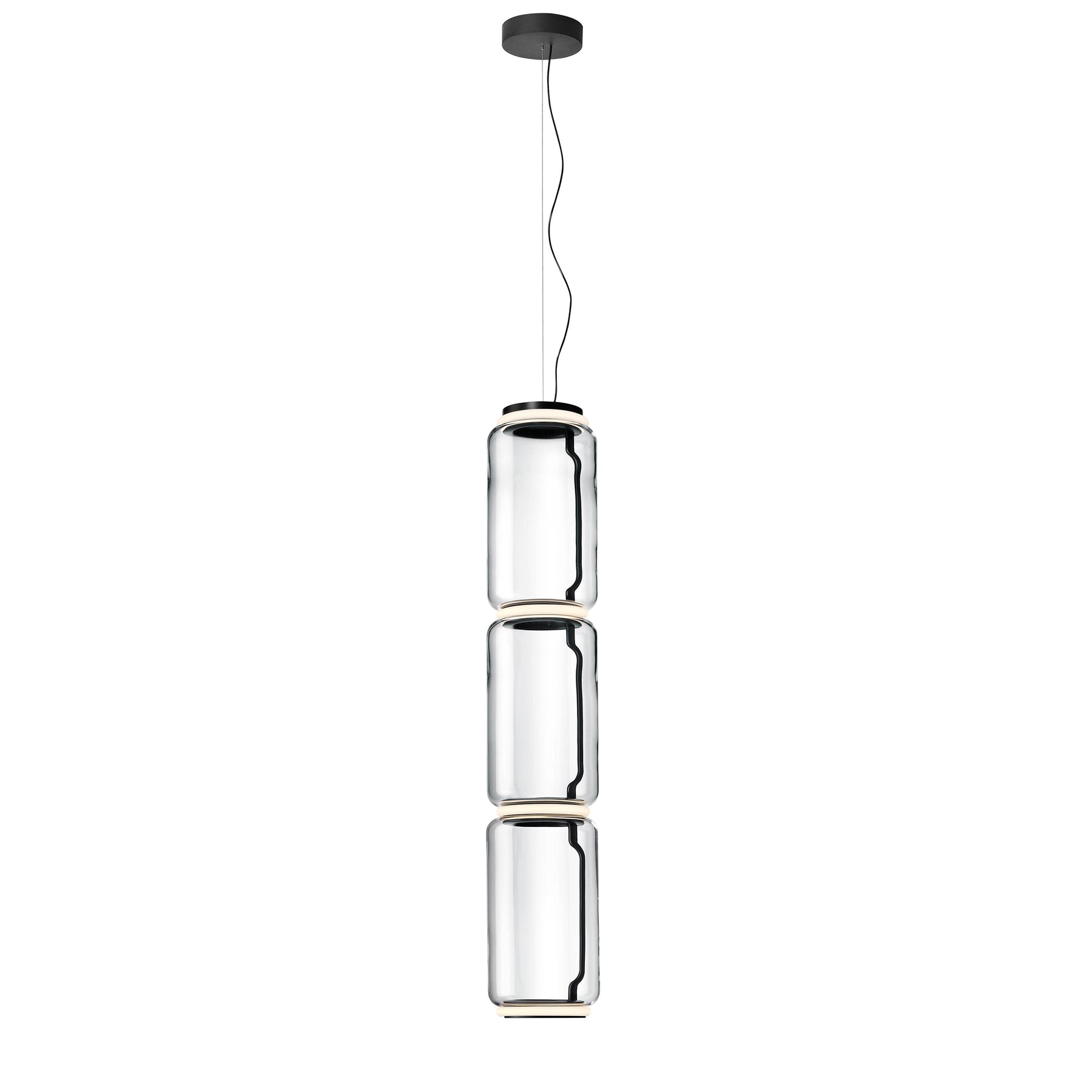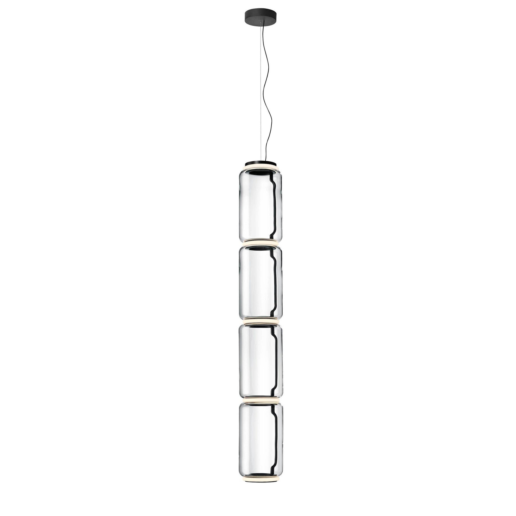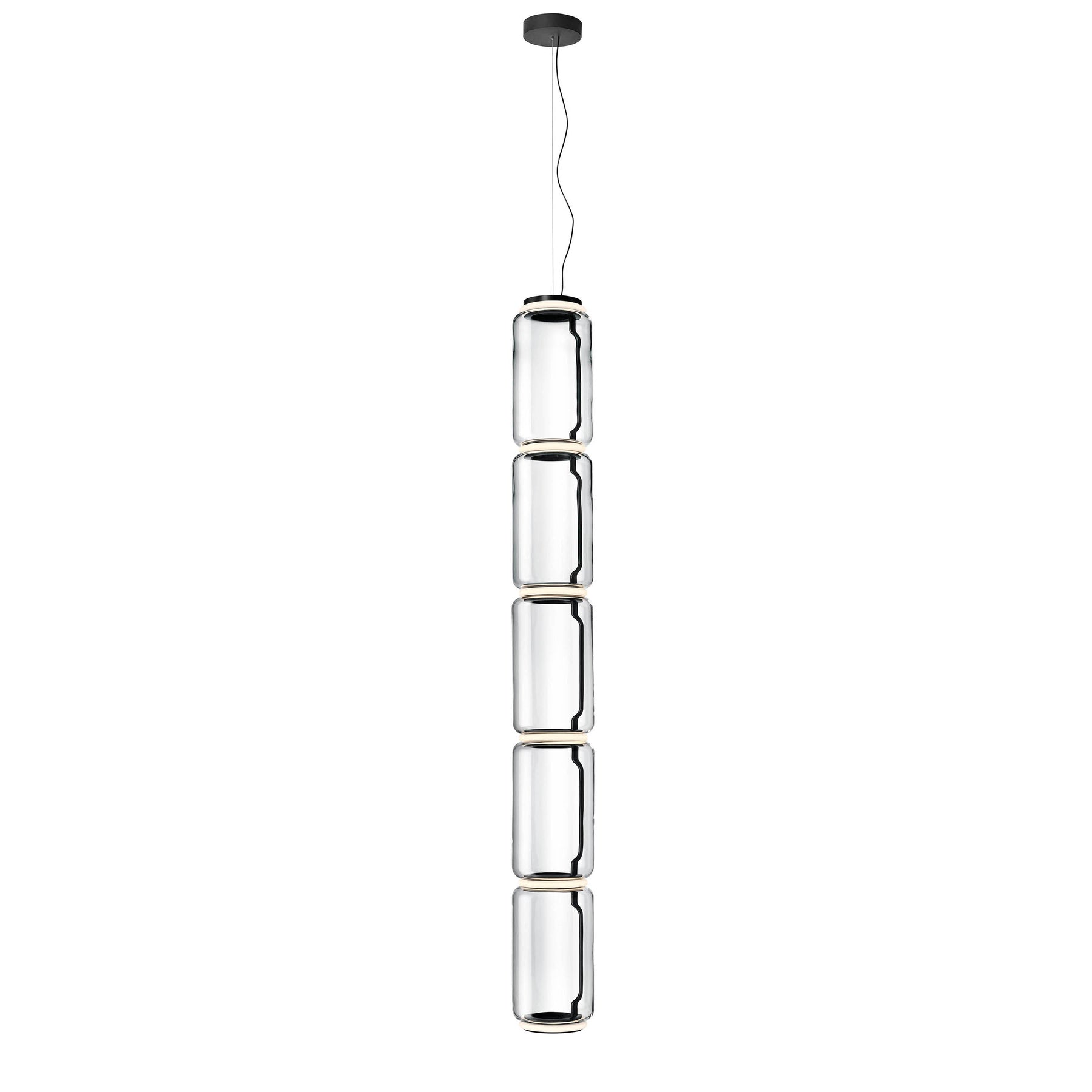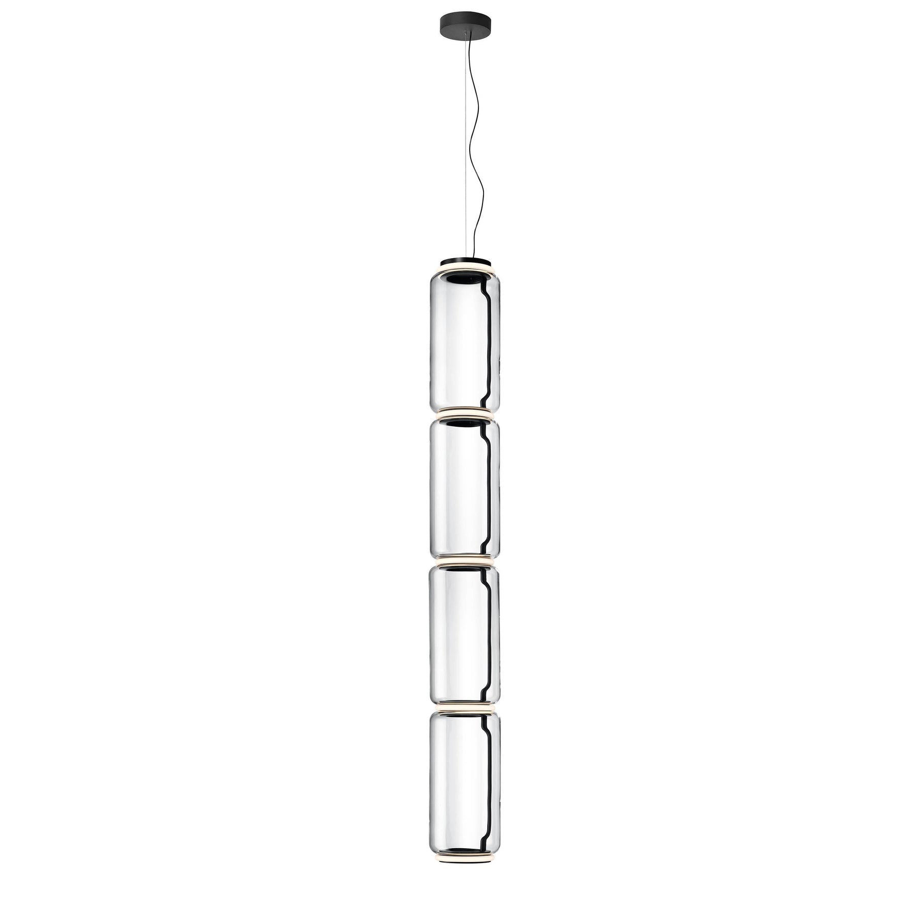 Noctambule LED dimmable pendant light short cylinders by FLOS is the latest in the series of inventive lighting fixtures envisioned and executed by master designer Konstantin Grcic. This groundbreaking lighting system is made up of various units that blend together to provide illumination at the intersection between every module. Offered in a variety of artistic designs, Noctambule’s dimmer can be operated from its power unit within the ceiling rose, or controlled using the pedal-enabled panel in its power cord.