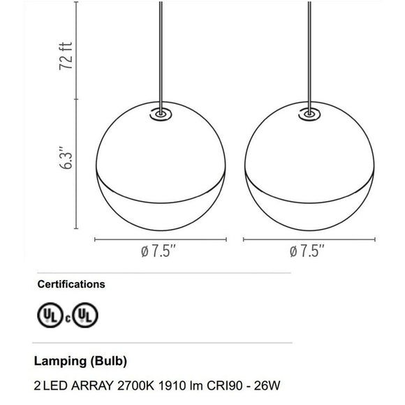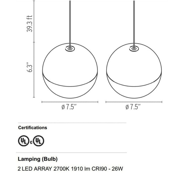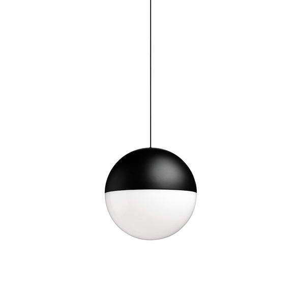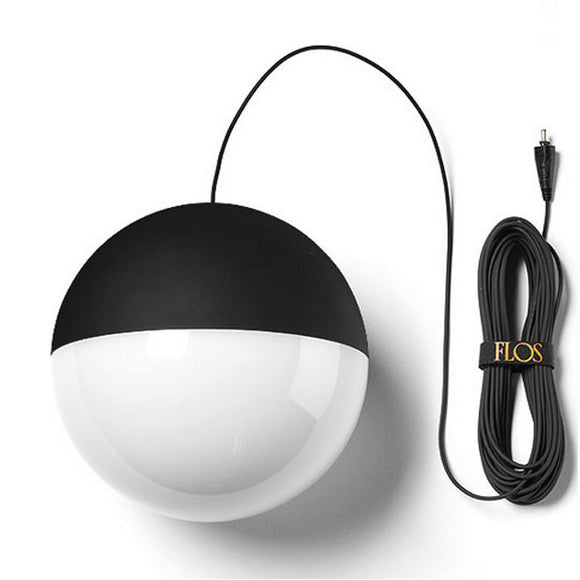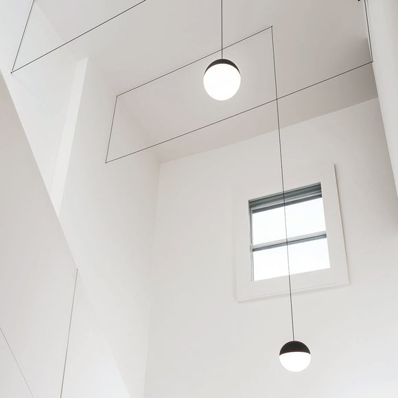 String Lights allow you to create a visual sculpture as a well as suspend pendants from where you would like to, independent of the junction box placement. To order a complete unit you will need to Available in one or two pendants, then choose the Ceiling or Wall Canopy or the Floor base with switch (both the ceiling/wall canopy and floor base can feed up to two pendants). Each pendant is supplied with a wall mounting kit (hooks) for stringing the cable. An optional Extra Connection Cable is available; this will allow you to set up turns for further custom configurations.
