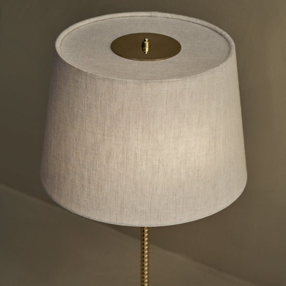 Elevate any room's aesthetic with the 9205 Table Lamp from GUBI. Crafted with California's modern design in mind, this lamp features a ribbed brass frame for a luxurious touch. The intricate shade expertly tempers the LED glow, creating a refined elegance. Its portable design allows you to easily move it from room to room, while the round baseplate adds a sense of balance.