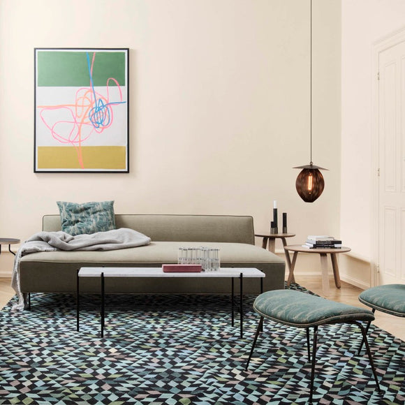 The Satellite Pendant holds the distinctive trait of Rigitulle, a technique and material invented by the designer himself that makes it possible to bend and fold the fabric-like metal sheet to an original, oblong-shaped pendant lamp. The lampshade has five color options; midnight black, white cloud, shy cherry, venetian gold and rainy grey, and is unique with its bulb all covered by perforated metal to exude an atmospheric light - creating a festive appearance. The interplay of light and shadow cast on walls and floors generate a dramatic feature in any dining room, hallway or restaurant. Hang the Satellite Pendant alone as a character piece or in multiples to create a cloud of luminosity.