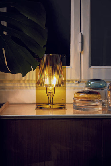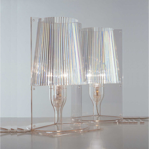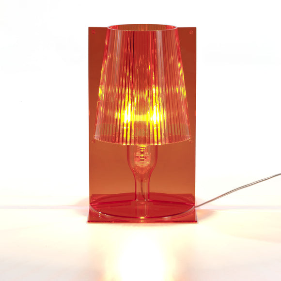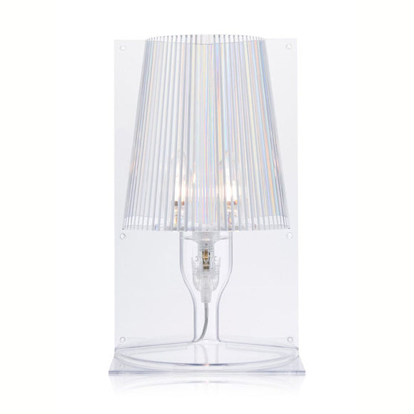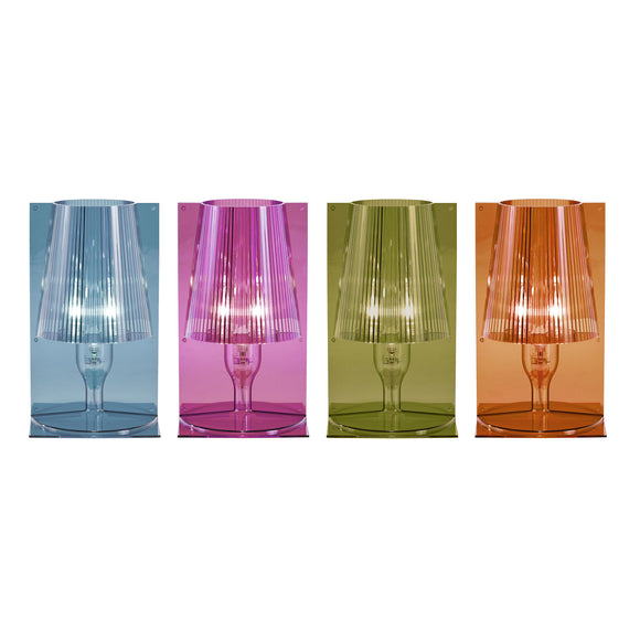 Transform your tabletop with the Take Table Lamp from Kartell. Designed by Ferruccio Laviani, this lamp features molded polycarbonate sections that beautifully come together to create a full, eye-catching form. With its sparkling rays of light and a stylish circle-on-square base, this lamp adds a touch of luxury and sophistication to any space.