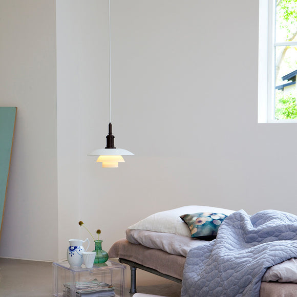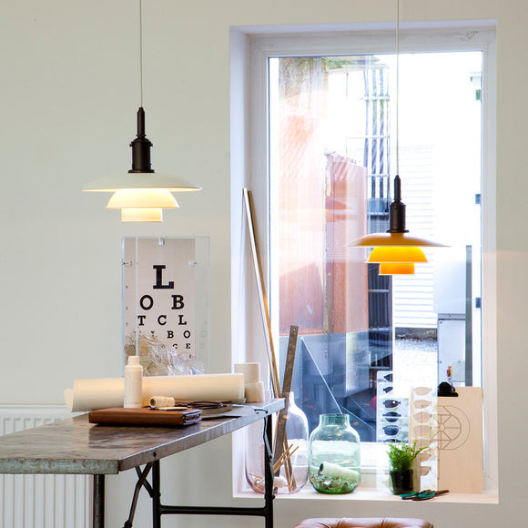 Treat yourself to the timeless elegance of the PH 3 1/2-3 Glass Pendant Light from Louis Poulsen. Based on Poul Henningsen's original drawings, this exquisite design celebrates his renowned three-shade system with hand-blown glass shades producing a pleasant, glare-free glow. Finished with metallic housing, this pendant light will bring sophisticated allure to your home.