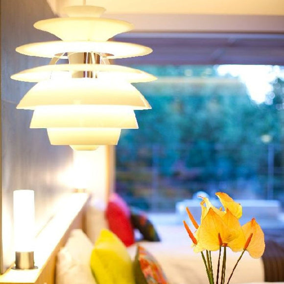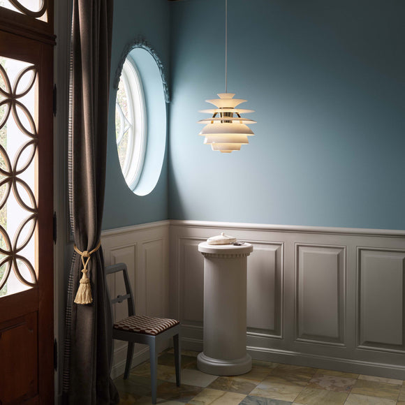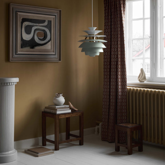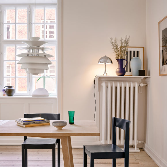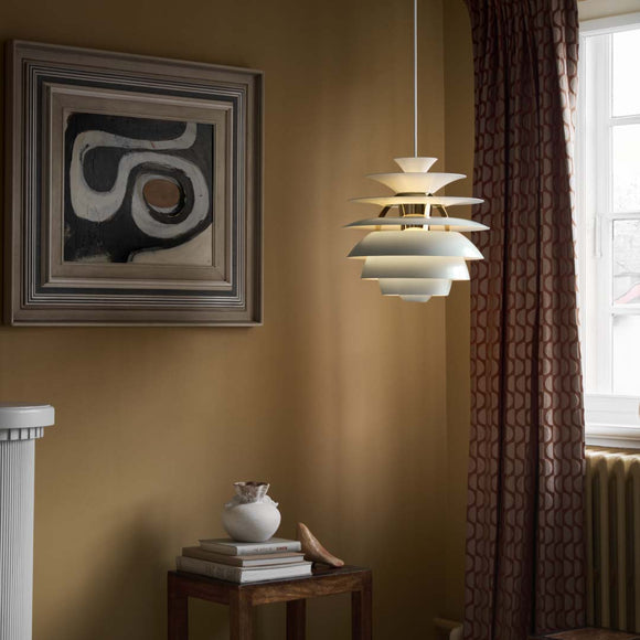 Poul Henningsen designed his first lights back in 1925/1926 for an exhibition in Paris. His work with Louis Poulsen continued right up until his death in 1967. Throughout his life, PH sought to create glare-free lighting; aiming to direct light where it was most needed, and creating soft shadows while using incandescent bulbs as a light source. Poul Henningsen designed Snowball in 1958 and it was exhibited together with PH 5 at the Danish Museum of Decorative Art. However, Snowball received no particular attention on this occasion, and was only re-launched and manufactured from 1983.