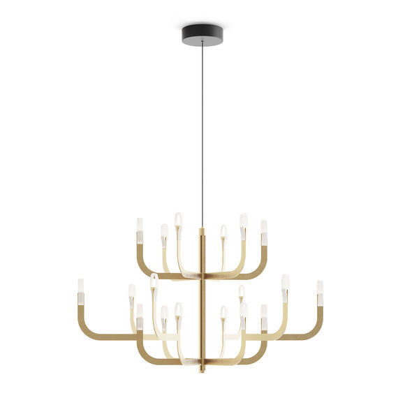 Transform your space into a luxurious haven with the J-US LED Pendant Light by Luceplan. Designed by Alessandro Zambelli and crafted in Italy, this pendant light combines modern technology with classic design for a stunning visual effect. The curved aluminum arms are powered by a central rod and emit a warm LED glow, creating an ethereal ambiance without the need for shades. Elevate your space with this sophisticated and unconventional lighting masterpiece.