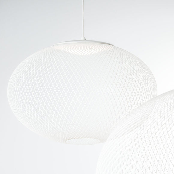 Inspired by the playfulness of a bubble, the NR2 Pendant Light from Moooi features an elegant diffuser wrapped in a fine web of fiberglass thread that shines and glimmers in the light. Outfitted with an integrated LED light source, this stunning creation from Bertjan Pot offers a subtly diffused glow perfect for illuminating any bedroom, living room, or dining room.