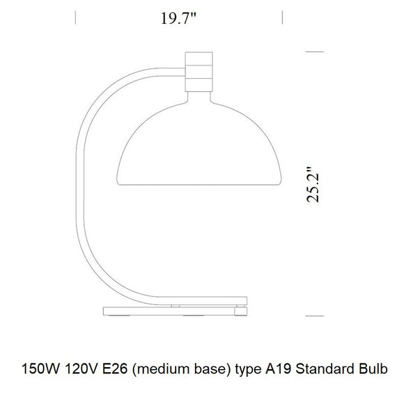 Table lamp with structure in chromed or black chromed metal. Cup-shaped diffuser, in opal white glass. Flood beam distribution, dimmer on the cable.