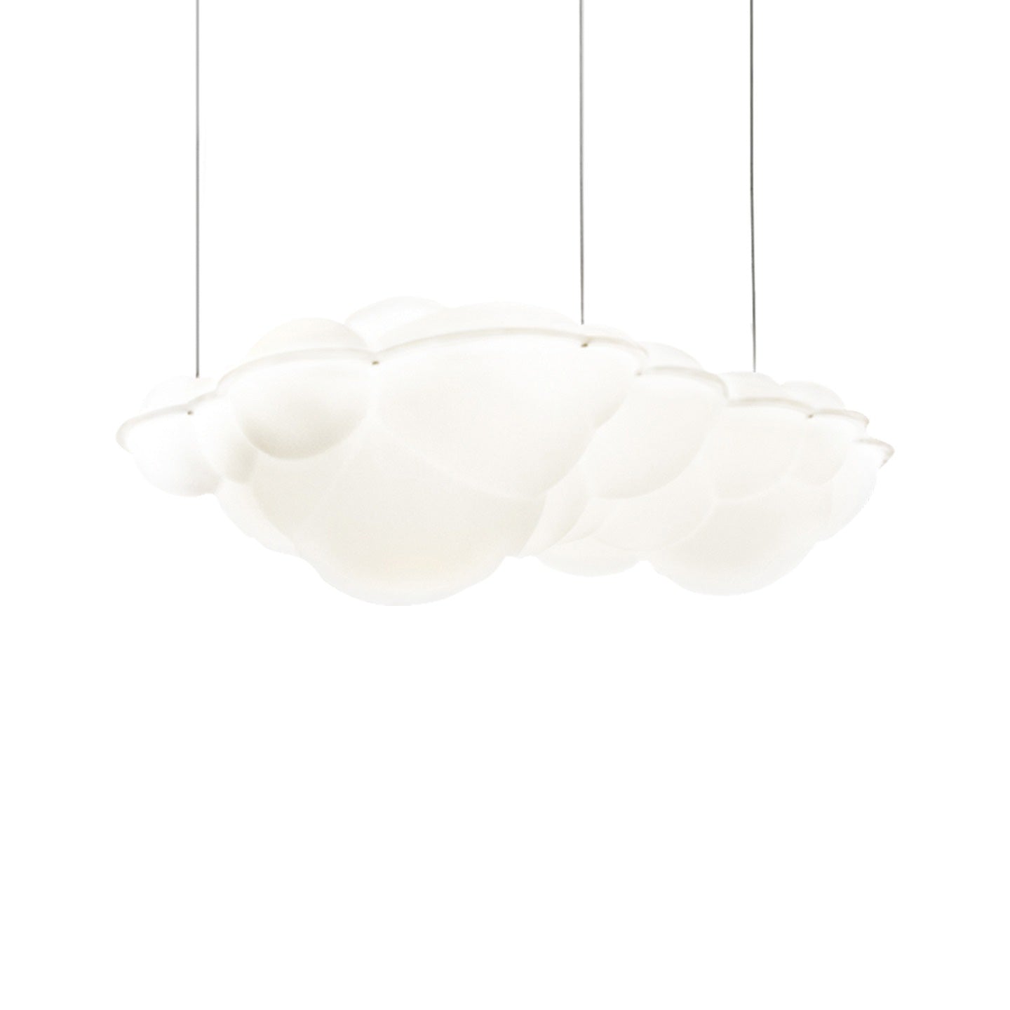 Pendant lamp available in two sizes with structure in natural opal polyethylene made with rotational molding. Diffused lighting for a widespread and comfortable output.