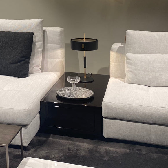 Refined simplicity meets impactful aesthetics and function with the 1953 Table Lamp from Oluce. Showcasing a metal frame with a satin gold and matte black finish, this table lamp is outfitted with a cylindrical shade that effortlessly imbues your space with clean, linear design. Perfectly proportioned to sit atop a solid wood desk to provide ample downward light for completing work or late night projects, this lamp is equally beautiful paired with a simple side table and oversized armchair for the perfectly crafted reading nook.
