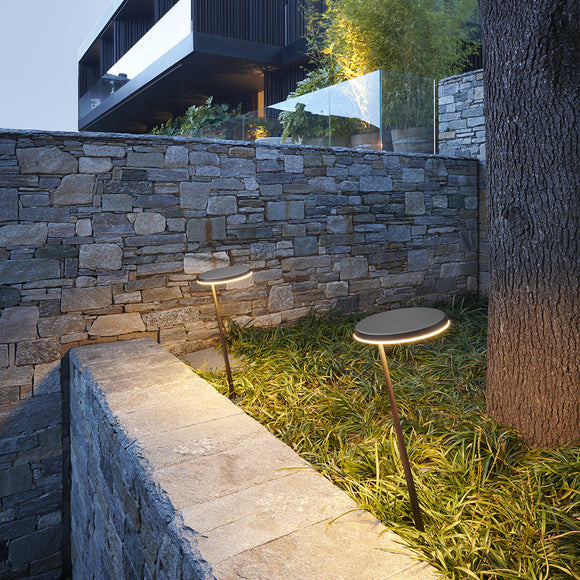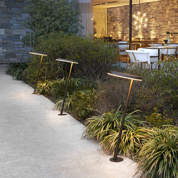 Transform your outdoor walkway or landscape design into a well-lit and stylish entertainment area to welcome friends and family alike with the Amanita Path Light from Oluce. Crafted from Indian Bronze-finished metal with a transparent acrylic diffuser, this path light offers a sophisticated and streamlined silhouette ready to provide downward direct light with its sloped conical stem. Position along your front entrance pathway for a welcoming glow when the sun goes down, or install amongst your favorite greenery and flowers for a touch of sparkle when entertaining al fresco.