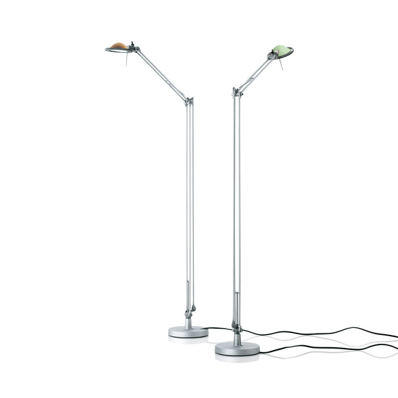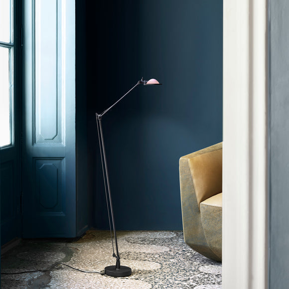 Light and well-balanced, ready to send light wherever it is desired. The parabolic reflector in aluminum or colored pressed glass emits a concentrated beam that is perfect for reading.