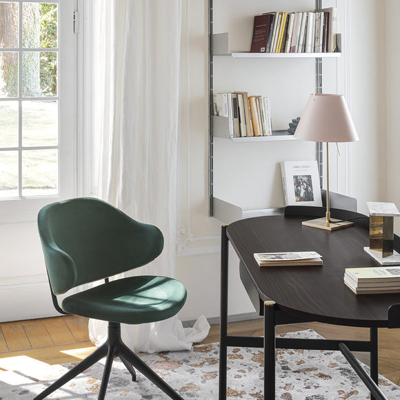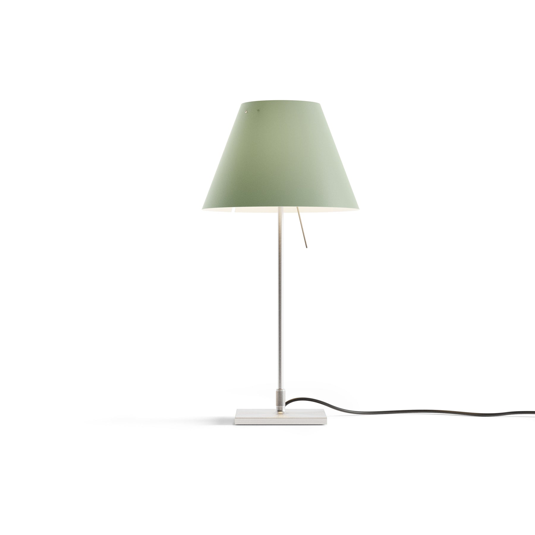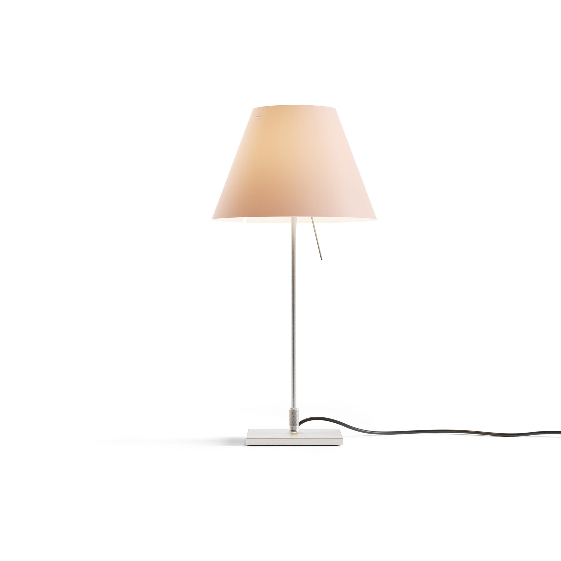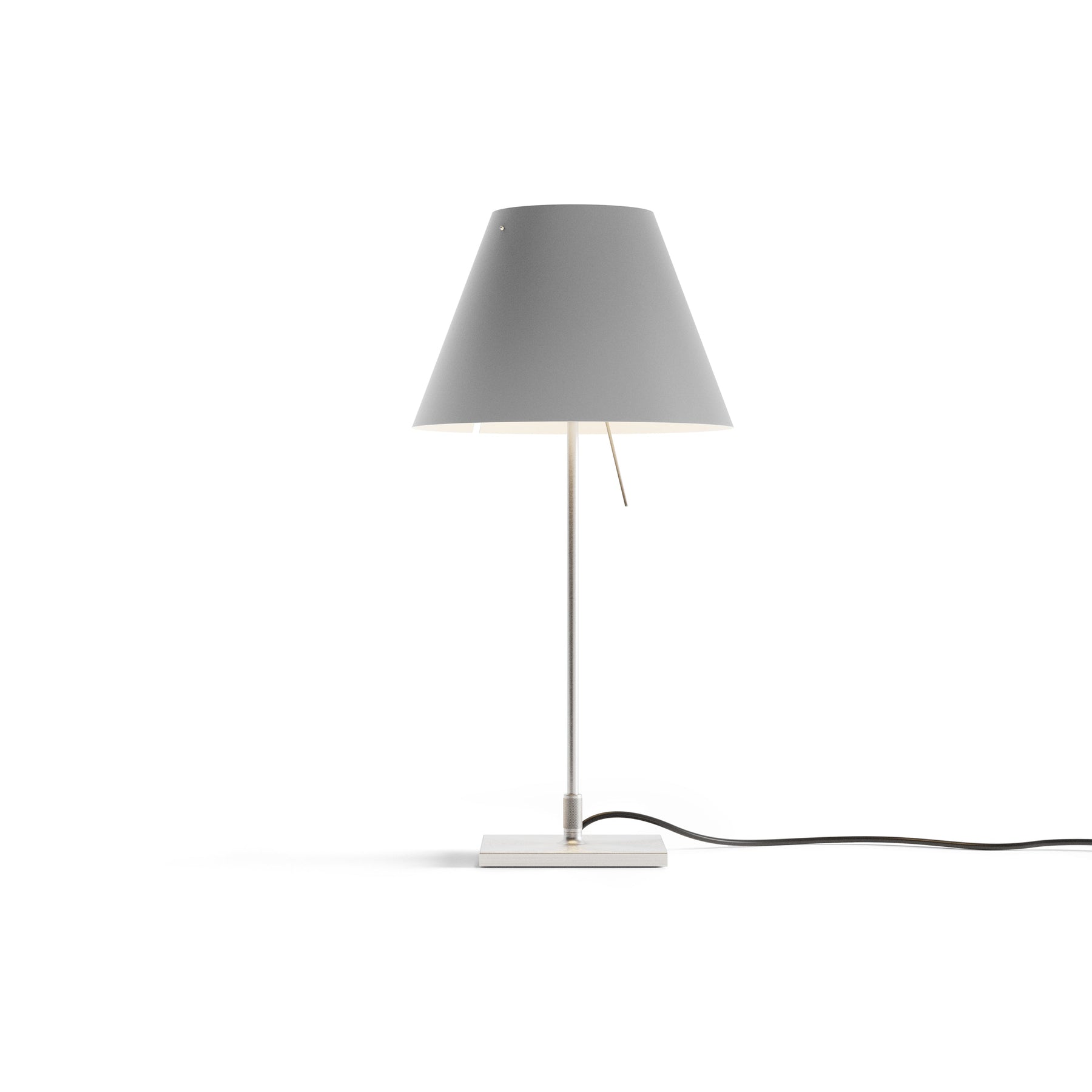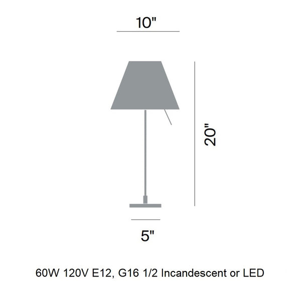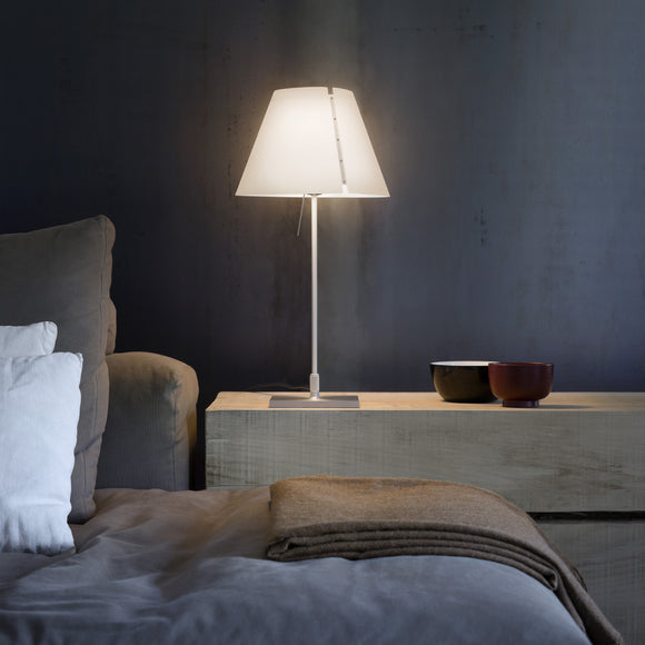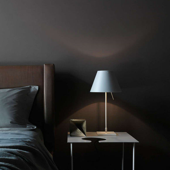 The Costanzina Table Lamp from Luceplan exudes elegance with its discrete, solid presence. Crafted from aluminum and a polycarbonate shade, this lamp is sure to make a tasteful addition to any room. Its robust construction gracefully balances on two points, offering a visually captivating look that is also functional - the shade won't fall if bumped. Enhance your living space with a touch of sophistication with the Costanzina Table Lamp.
