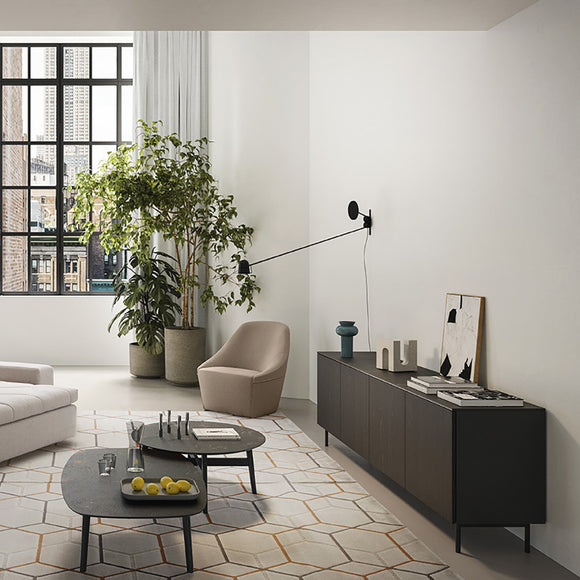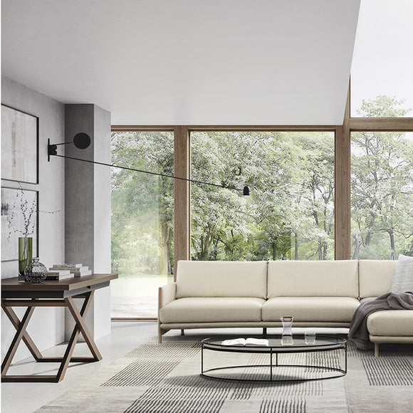 An object that seems to defy the laws of physics. Positioned as desired in space, the essential Counterbalance LED lamp, with its position variation, suggests the dynamic equilibrium of a sculptural mobile. Equipped with a fluid balancing system using gear wheels, the counterweight compensates for the movements of the long arm and ensures stability of the diffuser.