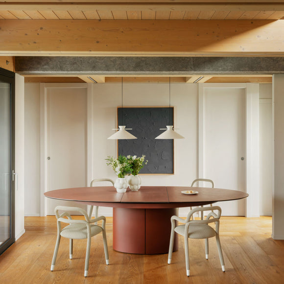 The Sesamo Elliptical Dining Table from MIDJ elevates extendable furniture to an art form with its seamless, invisible mechanism. Designed for effortless transformation, it extends smoothly without revealing any hardware, preserving its minimalist elegance. Perfectly suited for contemporary interiors, this table adapts gracefully to your space, combining refined practicality with sophisticated style. Experience the subtle magic of Sesamo as it transforms your dining area with understated innovation and timeless design.