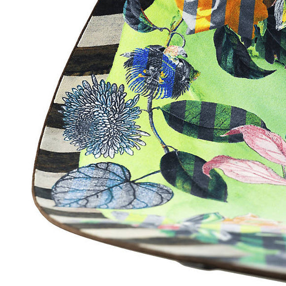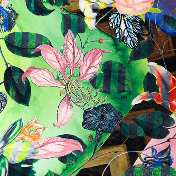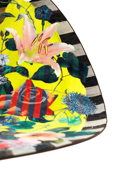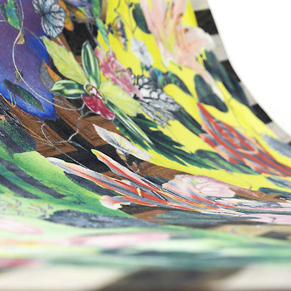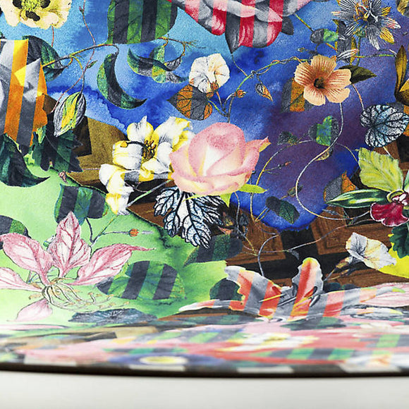 Lively and unique, Moooi's Malmaison Round Rug design comes from Maison Christian Lacroix. Monochrome flowers are adorned with overlaid stripes of various colors, all framed beautifully by a striped border. With several colors to choose from as well as being available in either low pile or tufted wool construction, it's easy to find a place for this eccentric piece in any home.