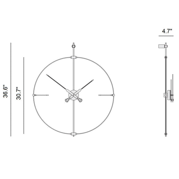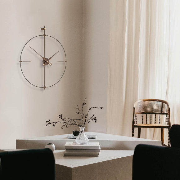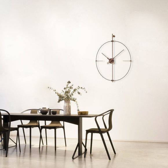 The Bilbao Premium Clock from Nomon is a stately combination of minimalist design and luxurious craftsmanship. With its sleek metal curves and smooth wooden construction, this clock's bold presence will transform your living space. Expressive hands embellished with rounded metal notes add an organic vibrancy to the ultra-modern design, creating a vibrant aesthetic.