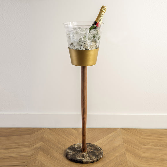 Renewal of the classic champagne bucket with noble materials, bringing style and glamour to your celebrations. A unique piece for your dining room or favorite restaurant.