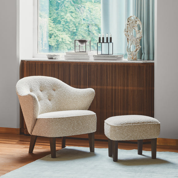 Originally Ingeborg by Menu Design now Audo Copenhagen was designed in 1940 by Flemming Lassen. The chair was designed by Master carpenter Jakob kjær. who manufactured Flemming Lassen's furniture for The Carpenters guild Annual Furniture Exhibition. The charming little easy chair is named after Flemming and Mogens Lassen's mother. the artist Ingeborg Winding. Ingeborg is a perfect match for the new sofa. called Vilhelm. The sofa is named after the brothers' father Hans Vilhelm Lassen who was a decorative artist. It's a beautiful reunion of Vilhelm and Ingeborg. Despite its petite size. Ingeborg brightens any room with its charm and exclusive style. Ingeborg looks beautiful from all angles. It can be placed anywhere in a room without taking up too much space.